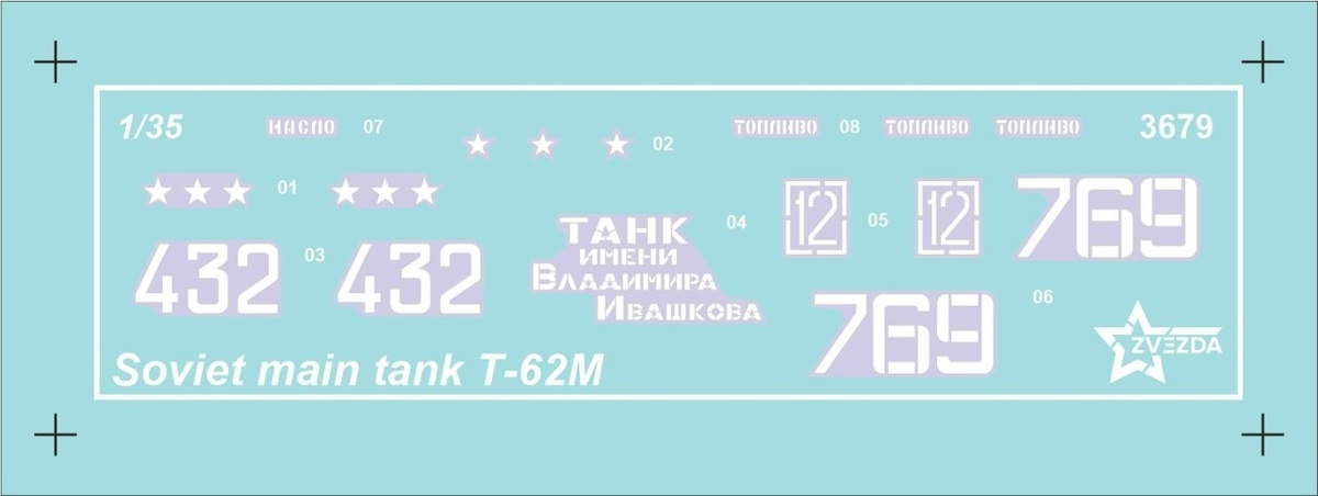 "Звезда" показала декаль и варианты окраски своей готовящейся к выходу модели танка Т-62М в масштабе 1/35