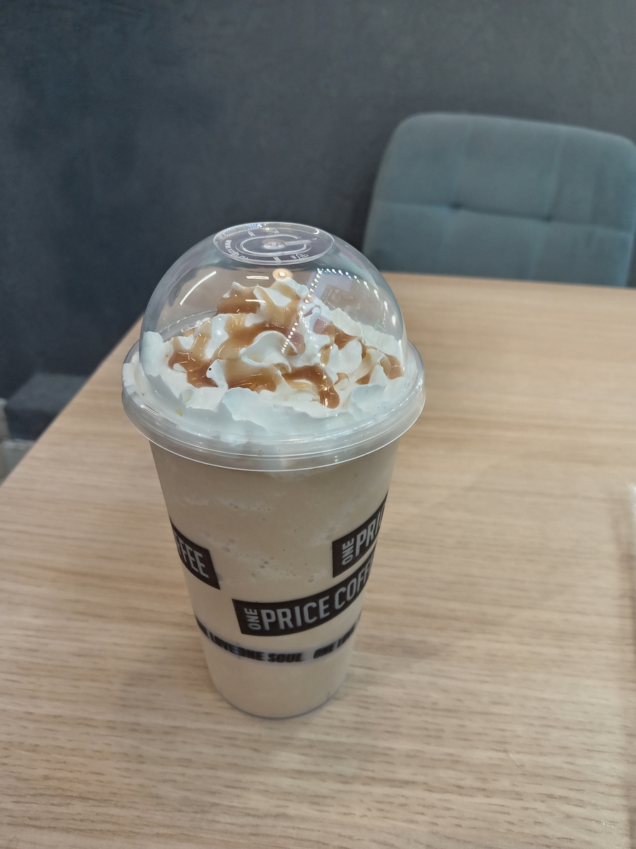 В кофейне совершенно неожиданно, я привык рафы пить, обнаружил нечто непонятное - фраппе (с разными сиропами). Я говорю: "Что это?" Мне объясняют: "Кофе с мороженым!" А, думаю, это что-то похожее на глясе, когда в горячий эспрессо сверху кладут немного мороженого. Заказываю. А хрен я угадал. Берётся много-много мороженого, туда добавляется эспрессо (как я понял), сахар и лёд, это перемешивается, потом сильнее перемешивается в миксере, потом сверху на это кладутся взбитые сливки, а на них - сироп (в моём случае карамельный). Блин, на улице и так не жарко. Сухих морозов я не боюсь, но вот холодные дожди бесят. Сырой воздух и сухой воздух с одинаковой температурой воспринимаются по разному. Пил очень долго. Сначала было вкусно. Потом лёд начал таять, портя вкус кофе, поэтому всё не допил. Молочную пену и сироп съел ложкой, это не затягивалось в трубочку. Это было интересно по вкусу, но повторять не охота. Летом от такого ледяного напитка простудишься, зимой и без него не жарко.