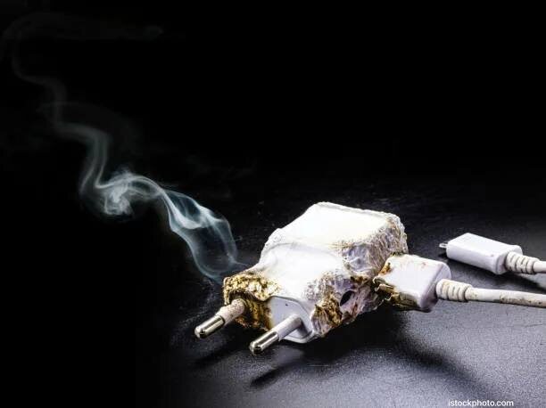 ❗️Оставленный в розетке зарядный блок способен стать причиной возгорания