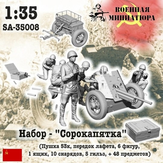 Ставропольская "Военная миниатюра" показала детали и фигуры своего набора "Сорокопятка" в масштабе 1/35, в который входят собственно 45-мм