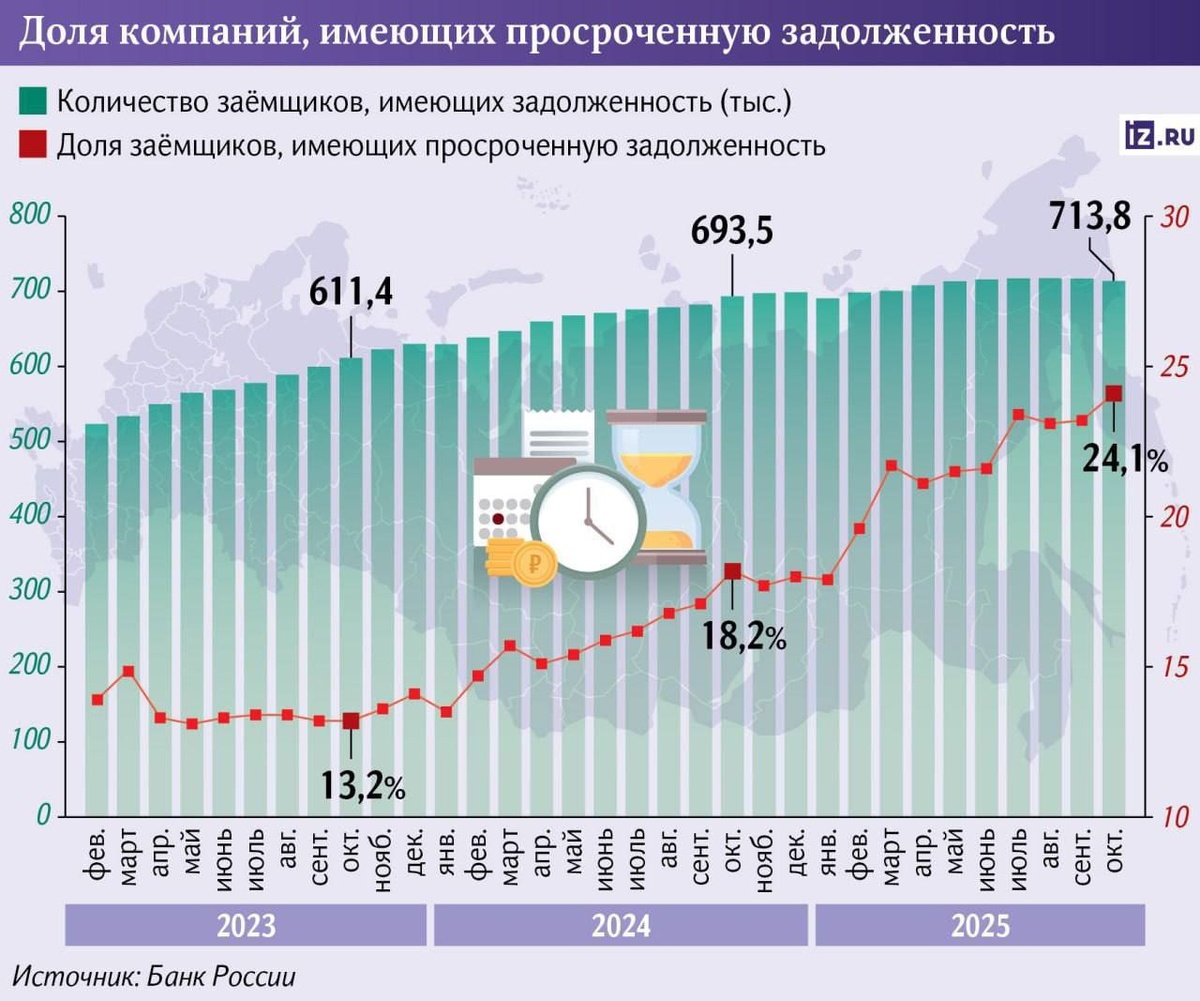 Российские компании сталкиваются с трудностями в погашении кредитов Доля невыплаченных кредитов значительно увеличилась, что приводит к тому, что около 25% юридических лиц не могут вовремя погашать свои долги. Это увеличивает риск неплатежей со стороны российских партнеров белорусских компаний за поставленные товары и услуги.