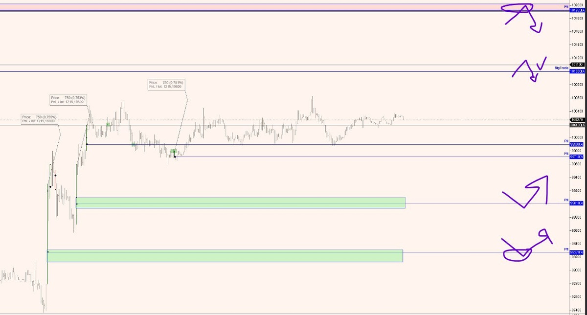 📈 График Ри, тф 2 мин — стратегия 750 Желающие могут сами посчитать прибыль по стратегии 750 за сегодня — уверен, результат многим покажется весьма интересным 😉 А я обращу ваше внимание на образованные уровни: 🔹 Выше по графику — BigTrade, а ещё выше — уровень теста усилия продавца. 🔹 Ниже — уровни усилий стратегии 750, сформированные сегодня. Это все будет основой плана на завтра. Не ИИР