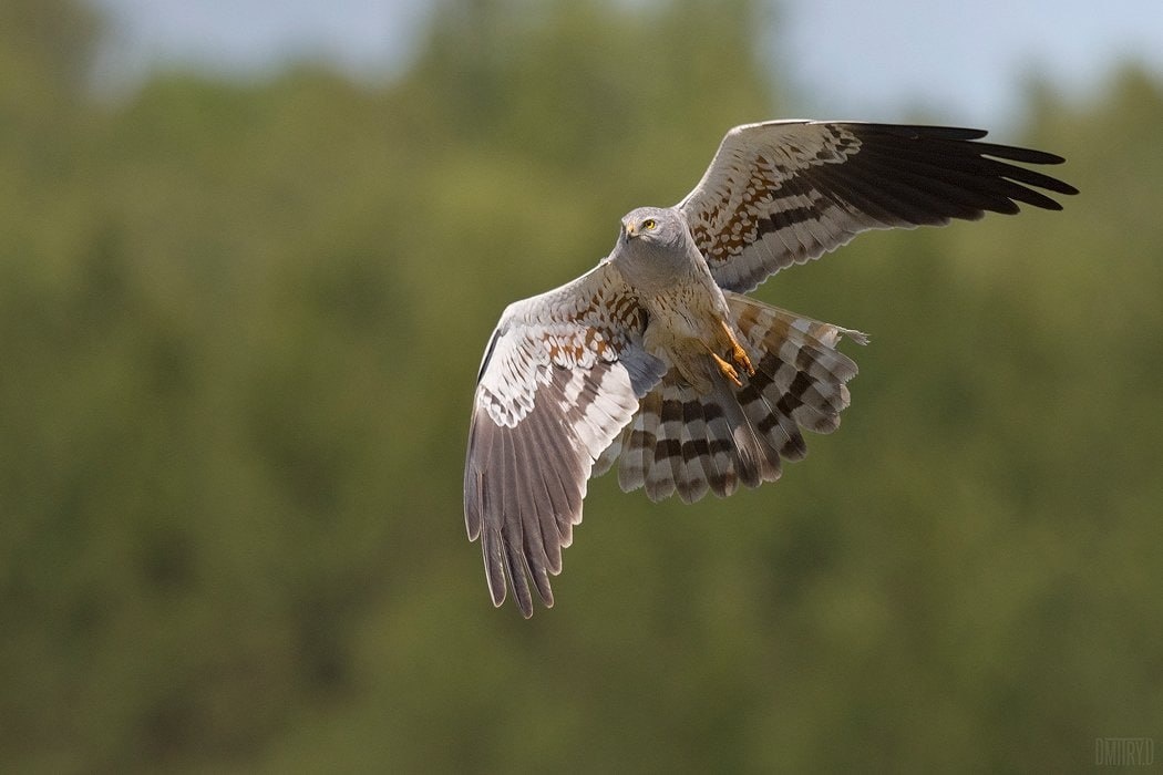 Луговой лунь — изящный охотник. Эту грациозную хищную птицу невозможно спутать с другими пернатыми охотниками. Самцы отличаются изысканным пепельно-серым оперением с темными кончиками крыльев, а самки имеют более скромное коричневато-охристое одеяние. Луни — настоящие мастера низкого полета! Они часами могут парить всего в метре-двух над землей, высматривая в траве свою добычу: мышей-полевок, ящериц и крупных насекомых. Их изящные движения в воздухе — завораживающее зрелище. Крылья луней образуют характерную V-образную форму, что делает их похожими на огромных бабочек. Луни строят свои гнезда прямо на земле, тщательно маскируя их среди высокой травы и болотной растительности. Это делает их кладки и птенцов особенно уязвимыми. В брачный период самец луня устраивает настоящие воздушные шоу с пикированием и кувырками, чтобы впечатлить самку. А еще он демонстративно кормит ее в полете, передавая добычу из клюва в клюв!