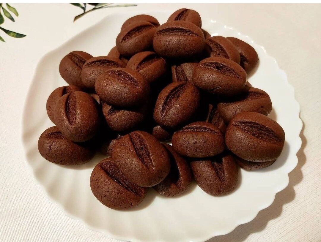 Печенье кофейные зернышки Ингредиенты : 18-20 гр тёплого молока + 1-2 чл растворимого кофе (по вкусу) 100 гр сливочного масла 82,5% 82 гр сахарной пудры 1 желток от яйца С1 (18-20 грамм желтка) 153 гр муки пшеничной 32 гр крахмала 17 гр какао-порошка 1 гр соли Приготовление. В теплом молоке растворить кофе и остудить до комнатной температуры. ✅Все сухие ингредиенты Просеять и смешать. ✅Сливочное масло комнатной температуры смешать с пудрой до однородности, добавить желток, ещё раз перемешать. Сильно не надо ничего взбивать, вы можете все приготовить даже при помощи венчика руками👌 ✅Добавить молоко с кофе, ввести сухие ингредиенты, перемешать до однородности. 🫶Тесто на выходе хорошо лепится. Катаем шарики по 5-8 грамм и придаём им форму кофейного зерна. В сториз постараюсь видео закинуть сегодня✌️ Отправить печенье в холодильник на 1-2 часа, либо заморозить минут 15-20. Выпекать при температуре 160 градусов минут 12. Приятного аппетита 😋