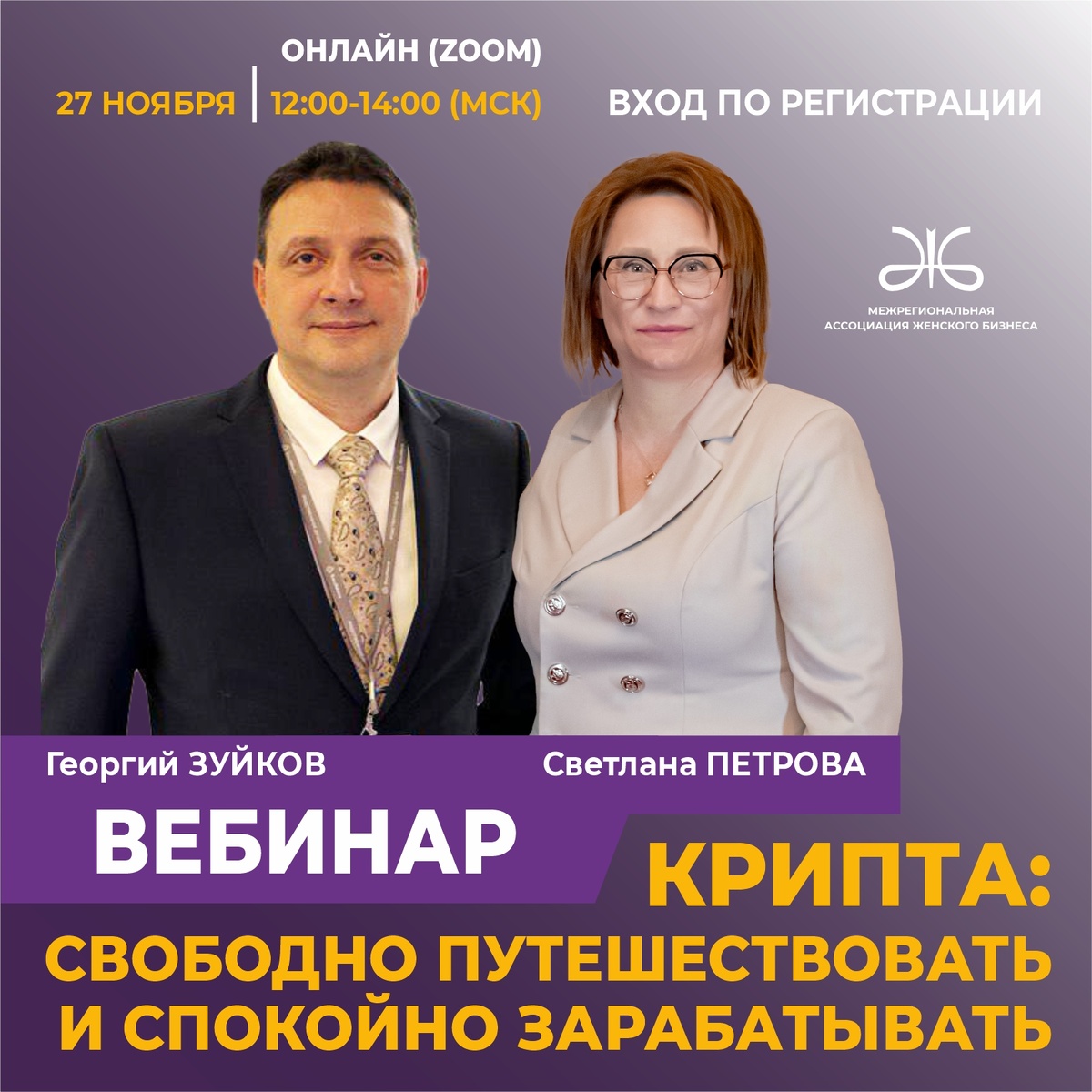 💃Открытый он-лайн вебинар Межрегиональной Ассоциации Женского Бизнеса 💵КРИПТА: СВОБОДНО ПУТЕШЕСТВОВАТЬ И СПОКОЙНО ЗАРАБАТЫВАТЬ Готовимся к будущему, где цифровые активы — не экзотика, а часть нормальной жизни ⏰27 ноября 2025 года 12:00-14:00 (МСК) Формат: онлайн (Zoom) 📝 На встрече разберём: • Что такое криптовалюта и почему она стала инструментом свободы • Как выбрать валюту для первых шагов: биткоин, эфириум, USDT и др. • Где покупать: биржи, P2P-платформы, обменники — плюсы и риски • Как распознать мошенников и не потерять деньги • Как использовать крипту за рубежом: оплата жилья, билетов, аренды авто • Криптовалютные карты и платёжные сервисы, которые реально работают • Как обменять крипту на национальную валюту безопасно и выгодно • Правовые нюансы: что можно, что нельзя в разных странах •Как выстраивать личную финансовую стратегию с учётом криптоинструментов • Крипта и финансовая свобода: реальные истории людей, которые живут “на блокчейне” 🎙 СПИКЕРЫ Георгий Зуйков,