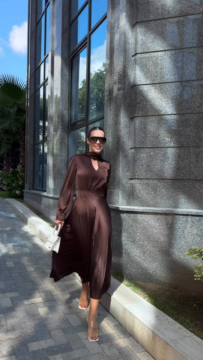 Существуют платья трендовые, которые служат гардеробу 1-2 сезона. Но есть позиции в гардеробе, которые остаются навсегда в гардеробе из за кроя, который никогда не выходит из моды. Платье в стиле lady like в шоколадном оттенке для ваших стильных выходов. ♡ Размер:s,m,l, xl ♡ Длина изделия: 123 см Цена 5500- Оформить заказ, помочь с размером - напишите нашим менеджерам online