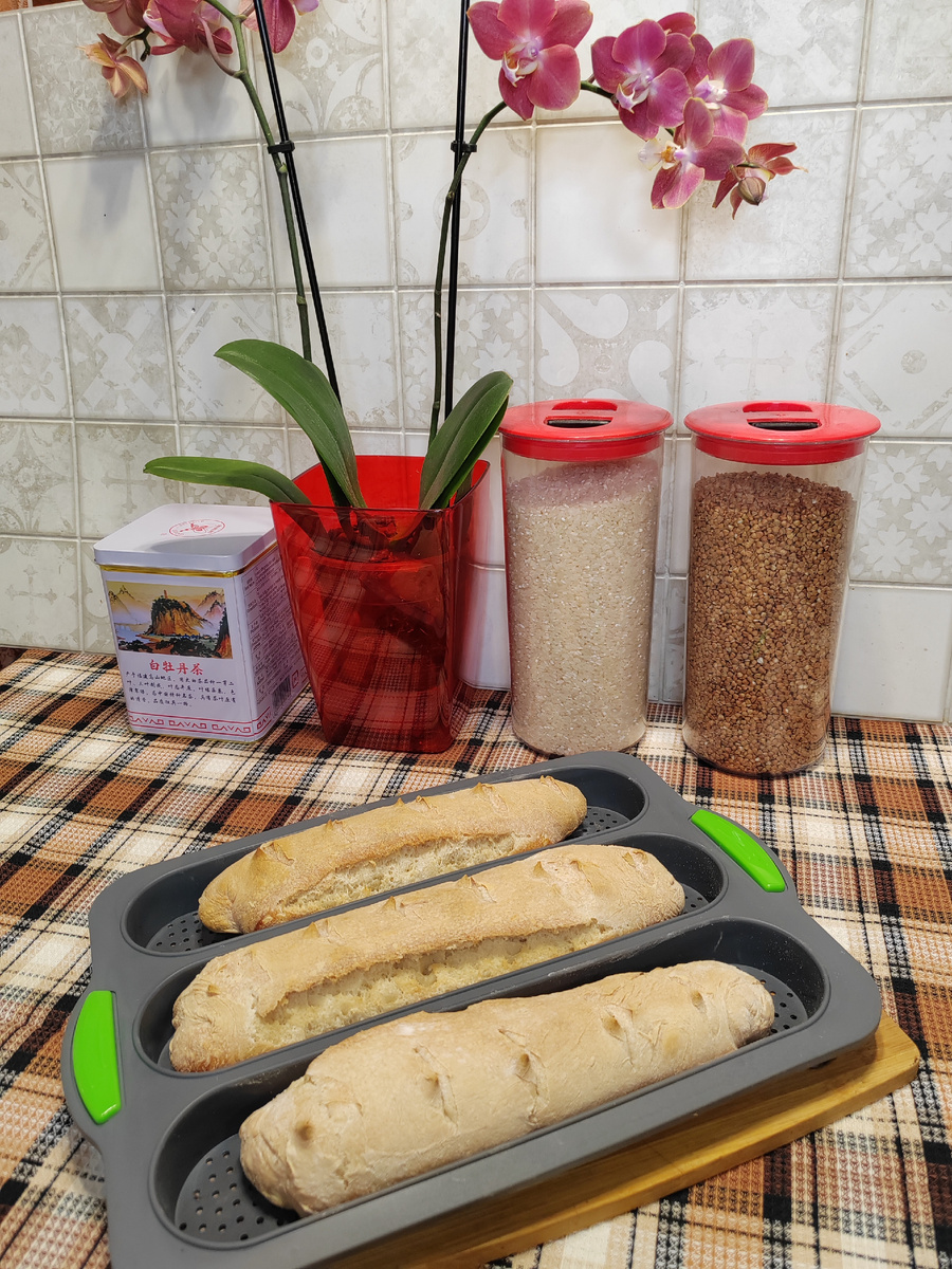 Багеты дома - нереально вкусные, хрустящие, ароматные! ❤️ И испечь их совсем несложно 😍 Состав: 1. Мука - 500 гр 2. Дрожжи быстрые - 1 ч.л. 3. Соль - 1,5 ч.л. 4. Вода теплая - 340 мл Замесить тесто и поставить на 2 часа в теплое место. За это время 2 раза обмять его. Сформировать багеты и поставить на расстойку в теплое место на 45 минут. Выпекать 25 минут при 230 градусах. Можно наслаждаться! Намазать масло на тёплый хрустящий багетик, сделать чашку кофе, и пусть весь мир подождёт! ❤️