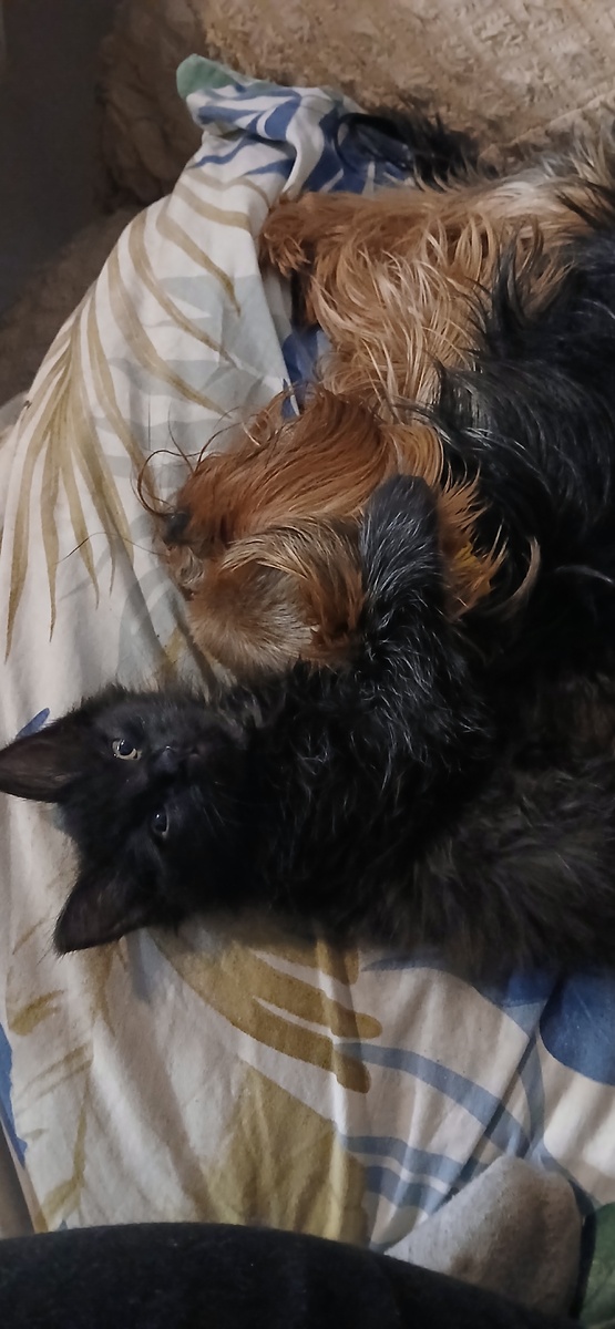 В мире домашних питомцев существует множество стереотипов, один из которых гласит, что кошки и собаки не могут ужиться вместе. Однако история нашей необычной пары доказывает обратное. Истинная гармония царит в отношениях между кошкой Боней и йоркширским терьером Жоржем. С первых дней совместного проживания эти питомцы стали неразлучны. Они не просто терпят друг друга — они искренне привязаны друг к другу. Совместный быт у питомцев выстроен удивительно гармонично. Они вместе принимают пищу из соседних мисок, деля территорию кухни без конфликтов. А их любимое занятие — совместный сон в одном уютном уголке, где Боня обычно занимает почётное место, а Жорж преданно устраивается рядом. Игривые моменты в их отношениях тоже случаются. Боня, будучи более активной и игривой, иногда может поддразнивать Жоржа. Но наш отважный йорк проявляет истинное благородство: как истинный джентльмен, он терпеливо сносит все шалости своей пушистой подруги. Особенная связь между этими питомцами поражает вс
