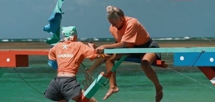 Испытание представляло из себя следующее. Девушки должны были сесть на три дощечки над водой. Около каждой девушки была ножовка, но её предварительно нужно было отвязать. Затем нужно было перепилить дощечки, на которых сидела соперница, чтобы она упала в воду.