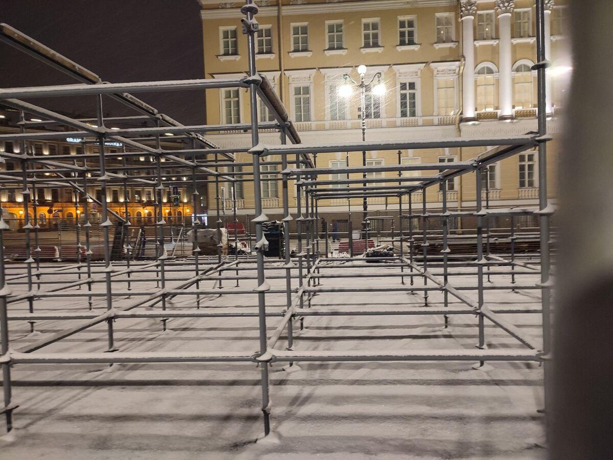 Восьмиметровую горку на Дворцовой площади возводят, несмотря на снегопад