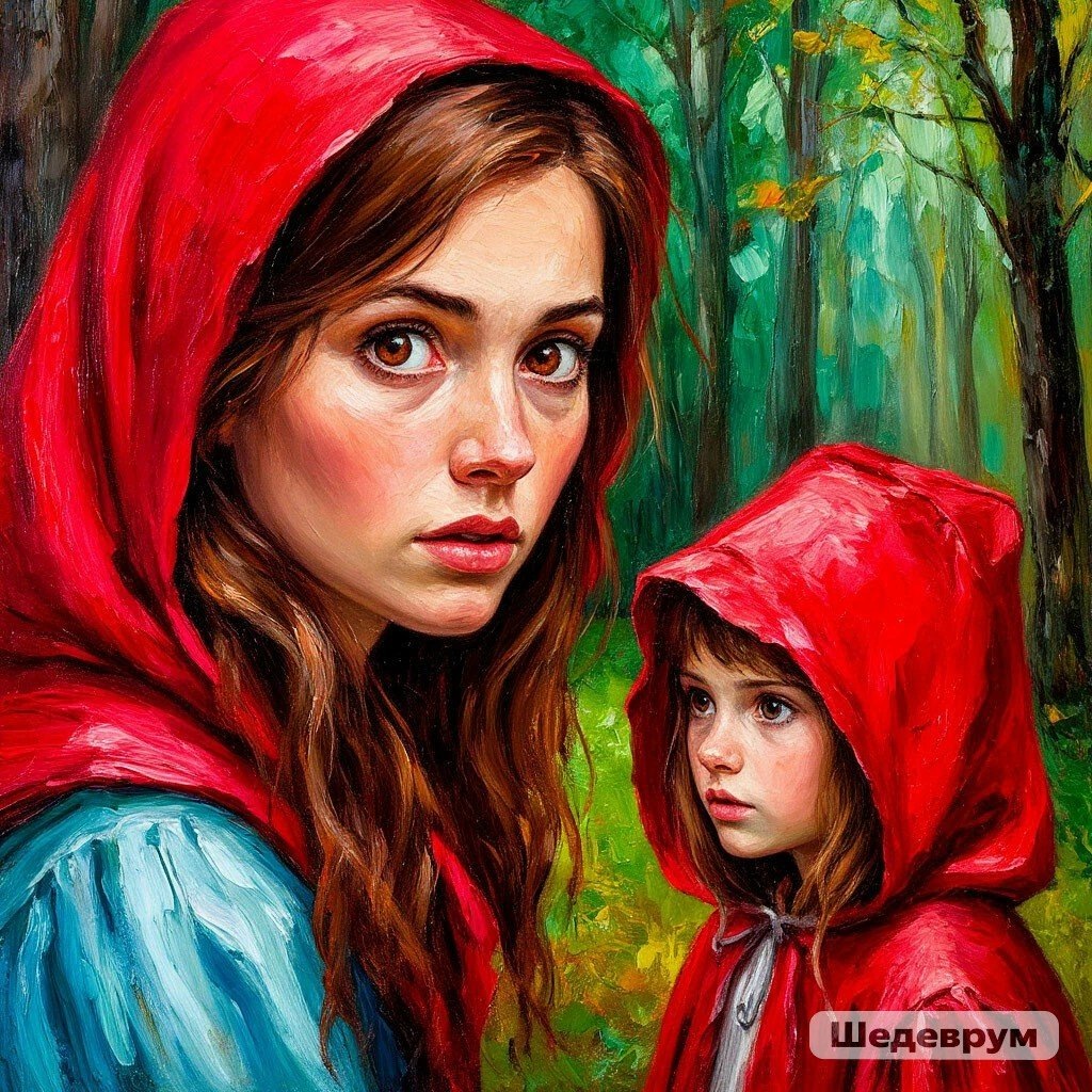 Возникает силуэт Красной Шапочки, девочки из сказки о волке.