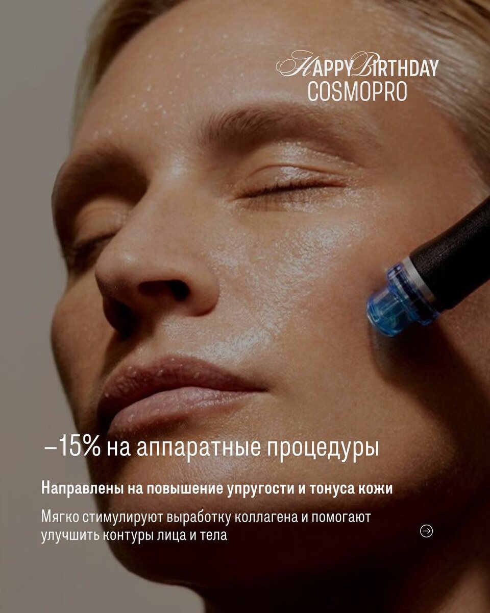 Аппаратные процедуры –15% Направлены на повышение упругости и тонуса кожи. Мягко стимулируют выработку коллагена и помогают улучшить контуры лица и тела.