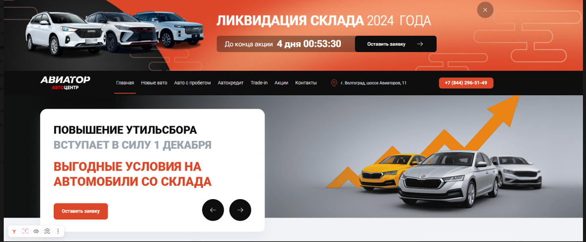 Авиатор — это автосалон в Волгограде. Открылся на месте дилера из нашего черного списка. Владелец фигурирует в деле о защите прав потребителей. Больше интересного — в нашем обзоре. В автосалоне на шоссе Авиаторов 11 в Волгограде можно купить новый или подержанный автомобиль. Ранее по этому адресу находился автосалон АС Моторс — дилер из нашего черного списка. Как сообщают наши читатели, сейчас он закрыт. Новый дилер обещает выгодные условия для покупки автомобиля со склада. Правда, что есть в наличии — непонятно. Если верить сайту, то абсолютно все. Однако сложно представить такое помещение, которое могло бы вместить такой объем. Условия акции не расписаны. По крайней мере, этого нет в открытом доступе. Публичная оферта отсутствует. Все это и стало поводом для нашей проверки. Владельцем автоцентра Авиатор является ООО "Авторигель" (ИНН: 5009139800). Компания была зарегистрирована в июне 2024 года. Уставной капитал — 10 000 рублей. Среднесписочная численность сотрудников — 1 человек, чт
