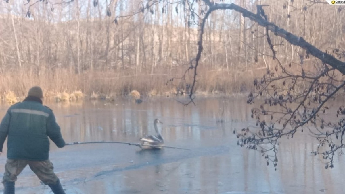 В Башкирии спасли лебеденка, оказавшегося в ледяной ловушке