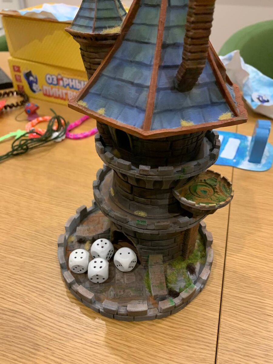 Напечатали и покрасил дайс-tower, чтобы никто не читерил с кубиками ;)