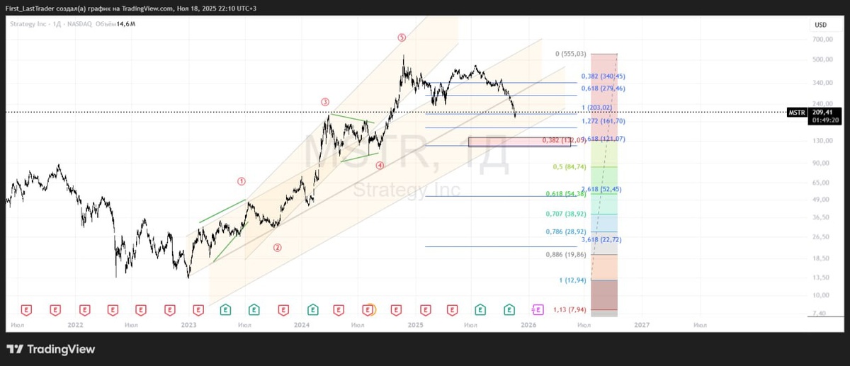 #mstr https://www.tradingview.com/x/STdGtrGV/ Попробовал взглянуть на биткойн через призму Майкла Сейлора. Если честно, лучше не стало. Скорее хуже. Хоть OI на фьючерсах биткойна пока не перестает расти, технически mstr упасть еще ниже может. Фиба просит. Хотелось бы оказаться Буратино 👇🏻