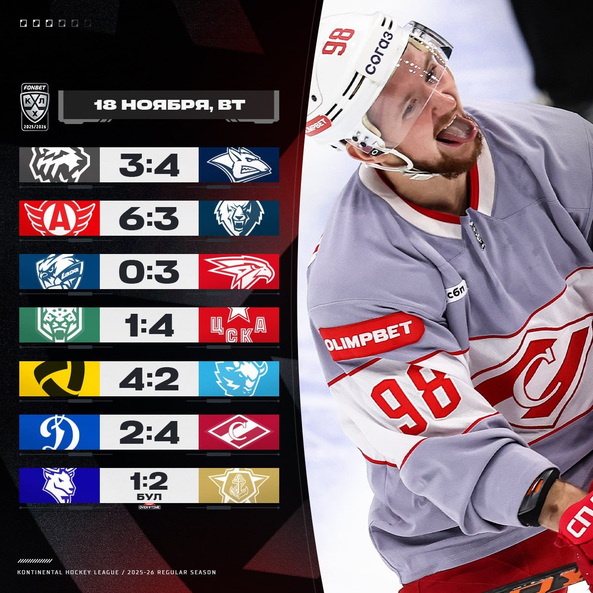«Спартак» и «Металлург» выиграли в дерби, 16-й гол Энэса не спас минчан в Череповце. 📹 Обзоры на YouTube 📺 Обзоры на RuTube 💬 Обзоры в ВК #ФонбетКХЛ