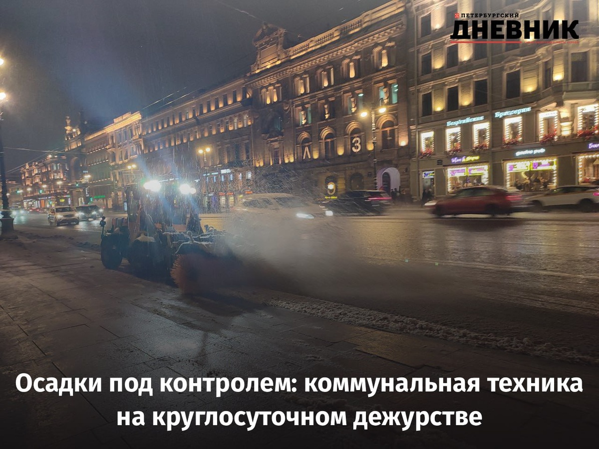 ❄️ Снег без последствий: как город справляется с осадками Сегодняшние осадки не доставили Петербургу серьёзных неудобств: снег начал идти днём и шёл неспешно, а дорожные службы заранее распределили противогололёдные материалы. Благодаря этому снег не задерживался на улицах и уходил в ливнёвку, не позволяя образовываться наледи. К вечеру интенсивность осадков увеличилась, и коммунальные службы перешли к прометанию, чтобы обеспечить безопасное движение пешеходов и транспорта. Часть техники остаётся в режиме постоянного дежурства на случай ухудшения погоды. Ночью улицы очистят от накопившейся снежной каши и вновь обработают реагентами — утром петербуржцев ждут чистые и безопасные тротуары и дороги. Фото: Александр Глуз Подписаться на Петербургский дневник в МАХ