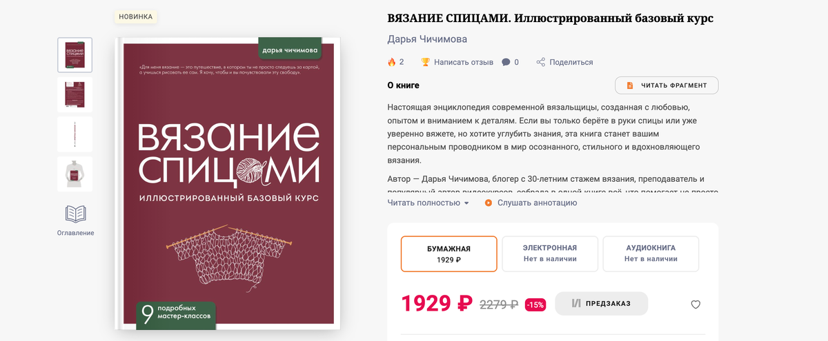Я писала в поездках, на кухнях друзей, в ночи, когда город замолкает, и утром, когда он ещё не проснулся. Иногда мне казалось, что это не я создаю книгу — это книга создаёт меня. И вот теперь, наконец-то, она готовится отправиться тем, кто сделал предзаказ. Теперь любой желающий может найти книгу «ВЯЗАНИЕ СПИЦАМИ. Иллюстрированный базовый курс» на маркетплейсах и в книжных магазинах!