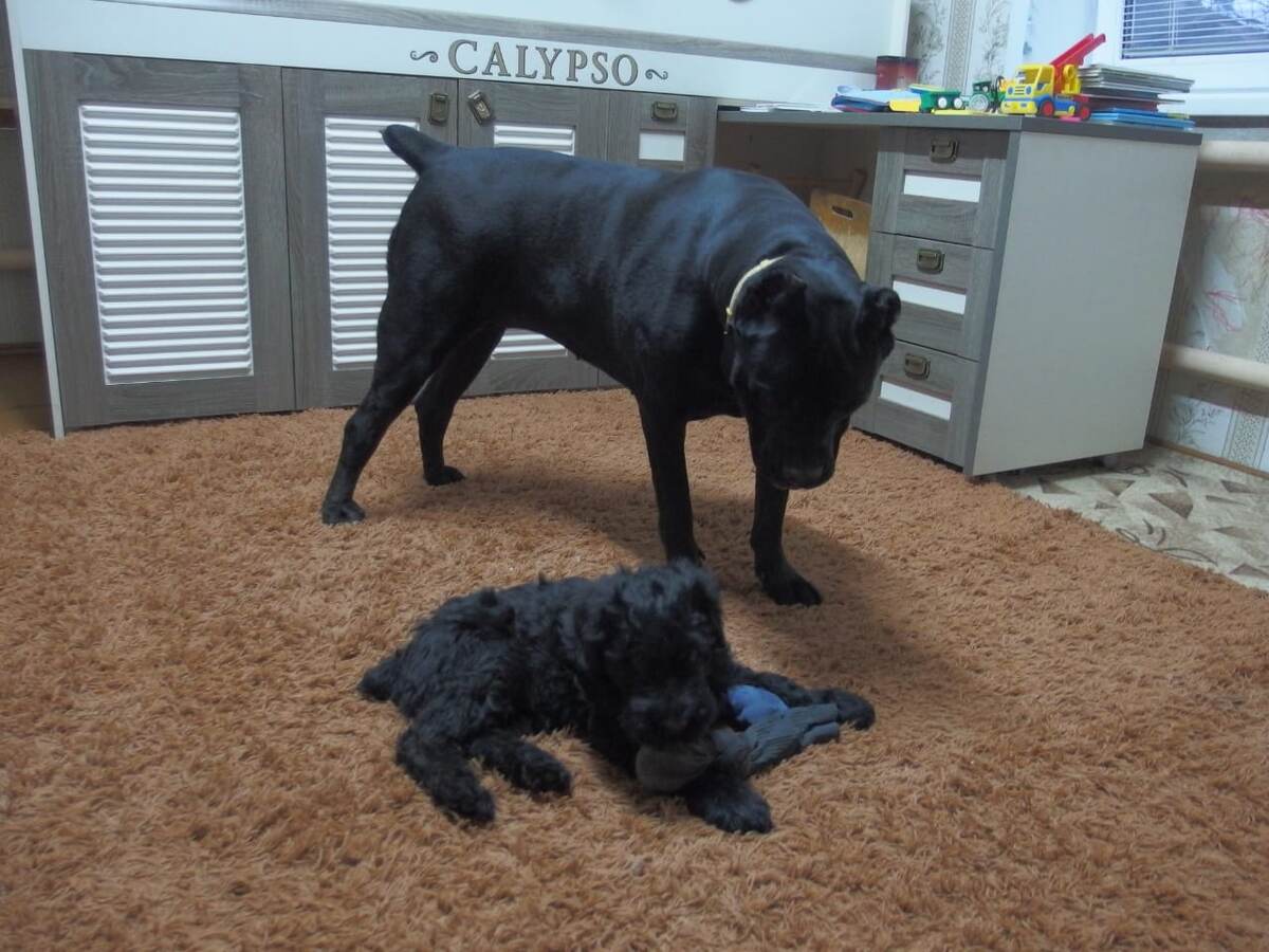 РУССКИЙ ЧЕРНЫЙ ТЕРЬЕР 2017г. Мои собаки кане корсо Маня 4 года и рчт Яна 55 дней. "Собака - она всегда в первую очередь для себя, а потом уже все остальное". Эту фразу всегда говорит наша чернышиная бабушка, Семенова Ольга. И это так. Никто не знает наверняка, что вырастет из щенка, как сложится совместная жизнь. Вот такой в 55 дней Яна появилась у нас. Корсо мы взяли в возрасте 3.5 месяца, а Яну - малышкой. В любом возрасте есть свои плюсы. #рчт #рчтлучшийдруг #русскийчерныйтерьер #собакасталина #русскийчерныйтерьерщенки #рчткупить