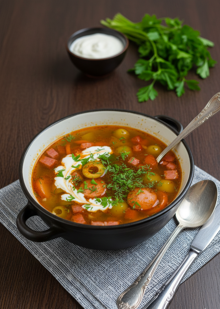 Привет, друзья! Хочу поделиться с вами моей технологией быстрого приготовления первых блюд, которую я в последнее время использую довольно часто. Она подходит практически для любых супов и позволяет существенно сэкономить время без потери вкуса! Сегодня мы приготовим по ней невероятно ароматную и насыщенную солянку. Суть в том, что все этапы, которые традиционно делаются отдельно (варка бульона, пассеровка), мы объединяем в одной кастрюле и начинаем сразу с обжаривания основы. Это не только быстро, но и невероятно вкусно! Супы по такой технологии готовятся невероятно быстро! Но есть и еще один важный момент: О пользе, или почему не нужно бояться отсутствия «классического» бульона: Многие диетологи сегодня выступают против употребления мясного бульона, из-за высокого содержания в нем пуринов и потенциально вредных веществ (антибиотики, гормоны), которые могут накапливаться в костях и соединительных тканях животных. Такой способ позволяет насладиться насыщенным и ароматным первым блюдом