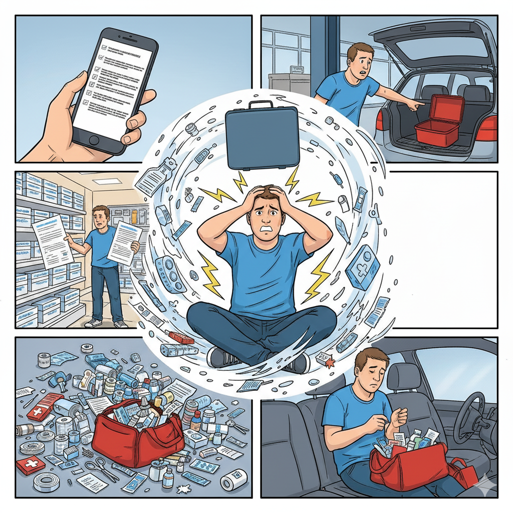 Ваш мозг вынесен бюрократией, желанием государства стандартизировать то, что должно быть в аптечке, и необходимостью тратить время на поиск недостающих элементов.