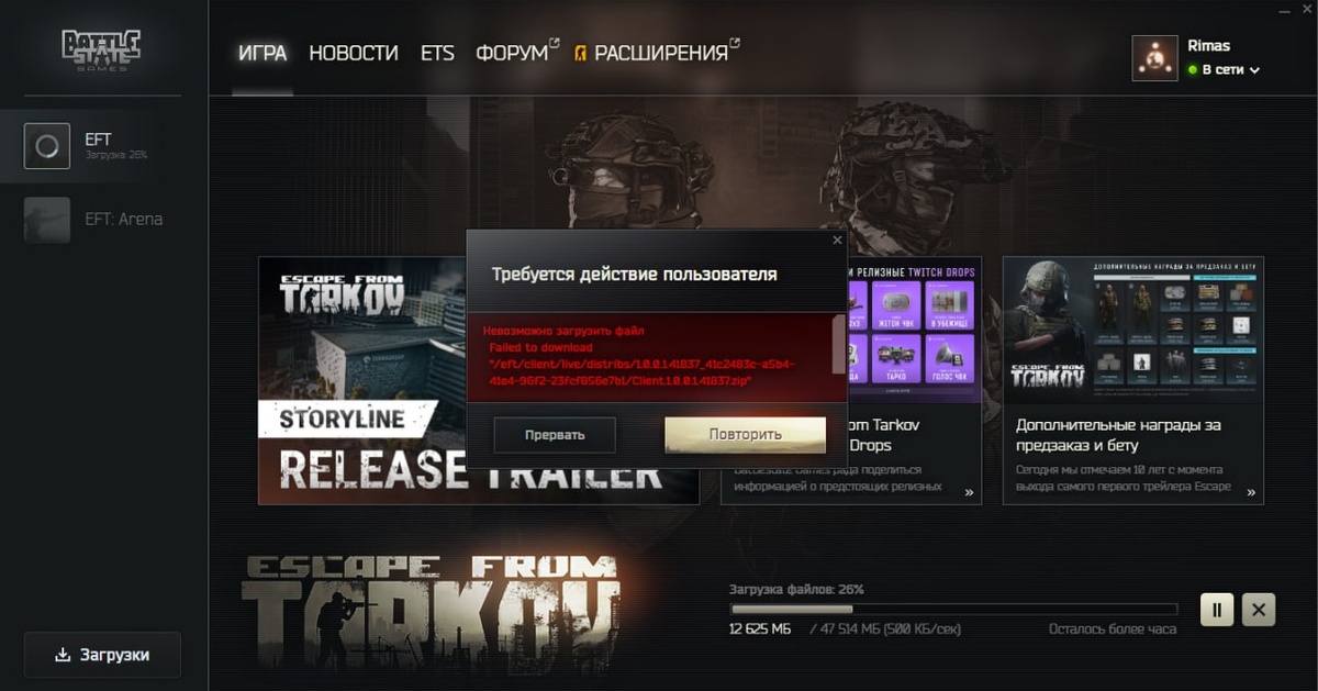 Тарков, ты издеваешься?! 🤬 Вторые сутки гружу, а тут постоянно вылетает эта хрень "Невозможно загрузить файл" (скрин прилагаю). Самое крутое - она ждёт, пока я вернусь и нажму "Повторить". Просто гениально. Скорость? 4 Мбит/с. Четыре, Карл! Релиз года, ага. Отменил загрузку...