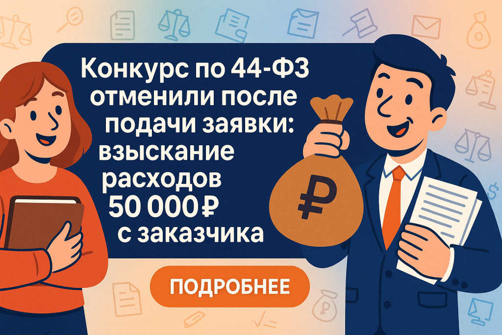 Конкурс по 44-ФЗ отменили после подачи заявки: как взыскать расходы 50 000₽ с заказчика