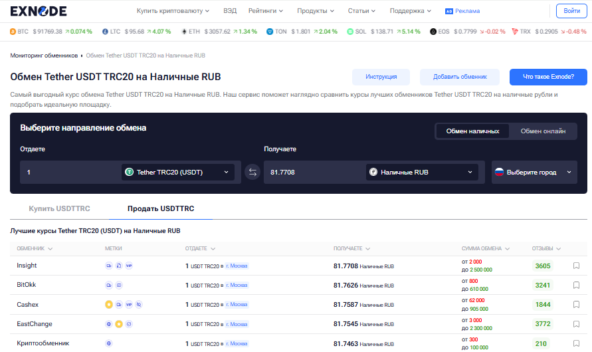 Перед тем как доверить свои средства любой платформе, критически важно проверить ее репутацию. Существуют независимые площадки, например, Exnode, где обычные пользователи делятся реальным опытом и оставляют честные отзывы практически о каждом криптообменнике. Это помогает сразу отсеять ненадежные компании и не стать жертвой обмана. Опираясь на такой проверенный опыт, можно выбрать сервис, где процесс конвертации USDT в фиат становится не головной болью, а простой и прозрачной операцией. Данная статья как раз и собрала в себе лучшие из таких проверенных вариантов, сфокусировавшись на сервисах, где можно быстро получить наличные без скрытых комиссий и лишних сложностей.