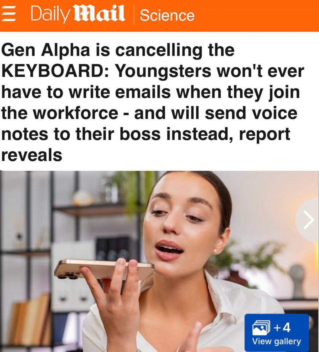 Виртуальная клавиатура на телефонах исчезнет к 2028 году Согласно исследованию Лондонской школы экономики под руководством профессора Майкла Мутукришны, к 2028 году голосовые технологии полностью заменят стандартный ввод текста на рабочих местах благодаря стремительному развитию ИИ-инструментов — уже сейчас 14% пользователей предпочитают общаться с ИИ голосом, а новое поколение работников будет сначала проговаривать свои мысли, используя клавиатуру лишь для финального редактирования текста. 👉🏻Новости №1 в Ростове 💌Прислать новость/фото Ростов Папа теперь в Ⓜ️🅰️❌