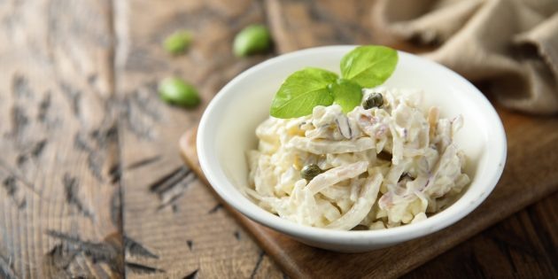 САЛАТ ИЗ КАЛЬМАРОВ ЗА 15 МИНУТ - ВСЕ ГОСТИ В ШОКЕ! Этот быстрый салат с кальмарами спасёт любой внезапный ужин! Рецепт за 15 минут, который взорвал соцсети - простые ингредиенты, вкусные морепродукты, минимум возни. Готовите легкий салат на скорую руку? Держите топ-рецепт с плавленым сыром! Серьёзно! Пока все делают оливье и цезарь, вы удивите оригинальным салатом за четверть часа. Понадобятся всего 2 тушки кальмаров (отварные или копчёные - выбирайте!), 2 яйца, 100 г плавленого сыра (охлаждённого!), пучок петрушки, 2 зубчика чеснока и 3 ложки майонеза. Опционально - каперсы и репчатый лук для тех, кто любит поострее! Берём кальмары (отварные дают нежность, копчёные - пикантность) и режем соломкой или кольцами. Это кулинарный лайфхак: чем тоньше нарежете - тем нежнее будет салат! Яйца варим вкрутую, нарезаем кубиками. А вот фишка: плавленый сыр обязательно охладите в морозилке 10 минут - тогда он легко натрётся на крупной тёрке! Без этого трюка сыр размажется. Петрушку мелко рубим (м