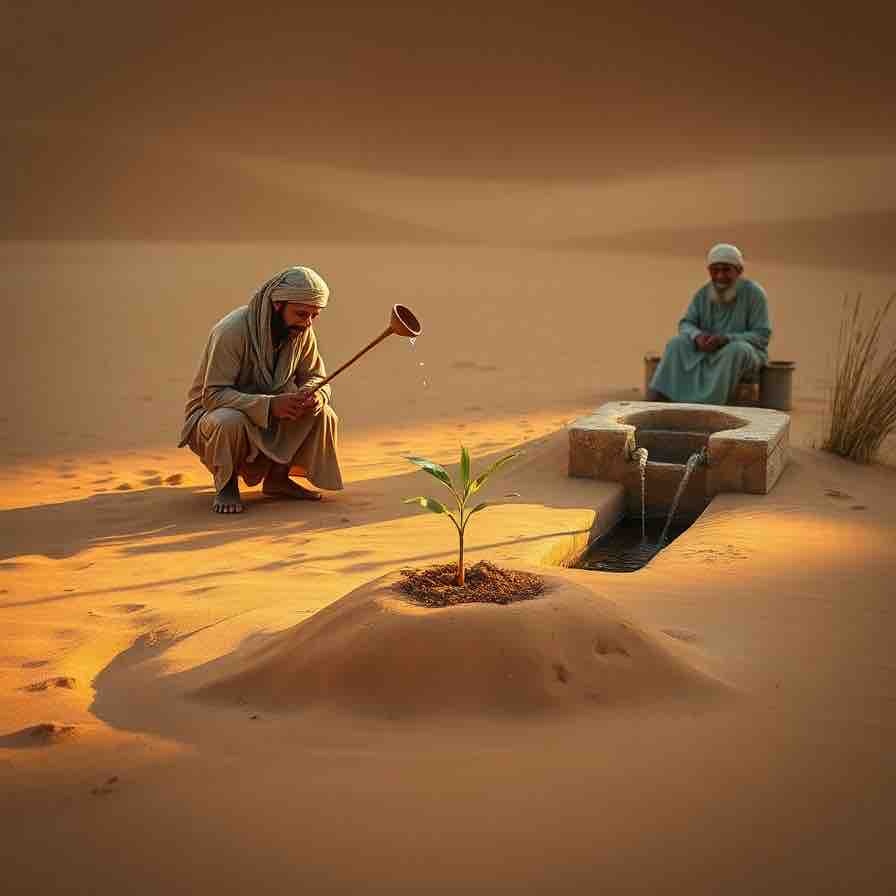 Путник нашёл в песке косточку финика. Солнце было жёстким, вода — редкой, а желания — быстрыми. У оазиса сидел старый садовник. — Посади, — сказал он. — И поливай. — Сколько ждать? — спросил путник. — Столько, сколько нужно жизни, чтобы вспомнить, что она — жизнь. Путник выкопал ладонью ямку, положил косточку, прикрыл горячим песком и принёс ковш воды. На следующее утро он пришёл снова. Песок был молчаливым. На третье утро — тоже. На седьмое — лишь следы ящерицы. — Может, выкопать и посмотреть, жива ли? — тревожился он. — Терпение — не любопытство, — улыбнулся садовник. — Это доверие. Путник начал поливать по часам: на рассвете и в закат. Он сделал маленький канал от колодца, построил от ветра заслон из камыша, и научился сидеть в тени, не торопя взглядом. Однажды, усталый и раздражённый, он всё же приподнял песок — и сломал крохотный бледный росток. Он похолодел. — Прости, — сказал он пустыне и самому себе. — Я хотел быстрее, чем умеет время. Садовник молча дал ему нов