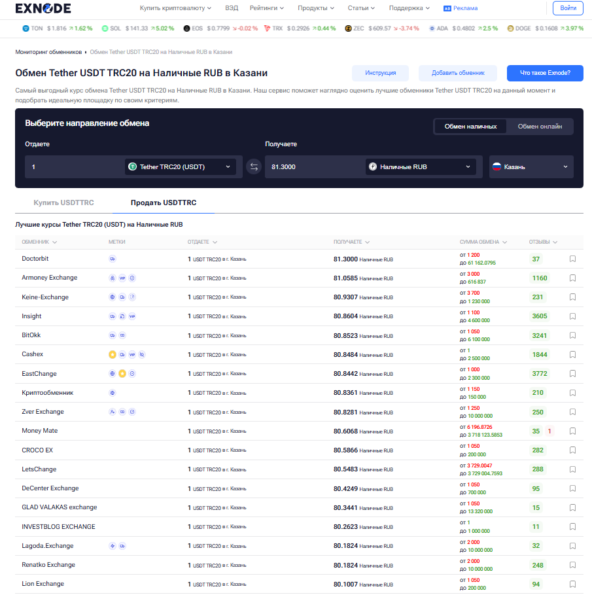 Чтобы выбрать надежный сервис и не потерять средства, удобно пользоваться мониторингом Exnode. На платформе можно проверить репутацию обменников криптовалюты в Казани, актуальные контакты, направления работы и отзывы клиентов. Это помогает выбрать проверенный криптообменник в Казани и проводить операции с максимальной уверенностью.