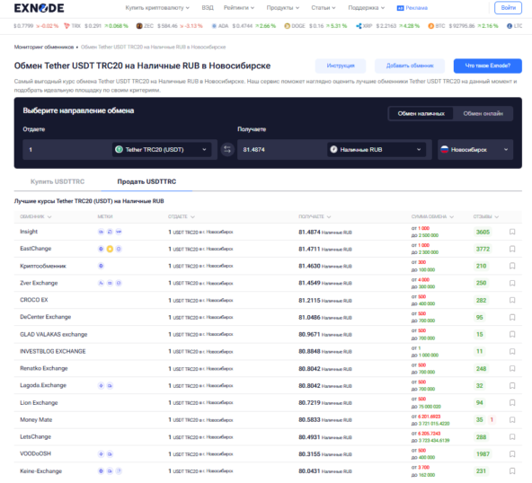 - Компетентная поддержка — сотрудники должны разбираться в сетях, помогать с проверкой реквизитов и сопровождать обмен в Новосибирске на всех этапах.