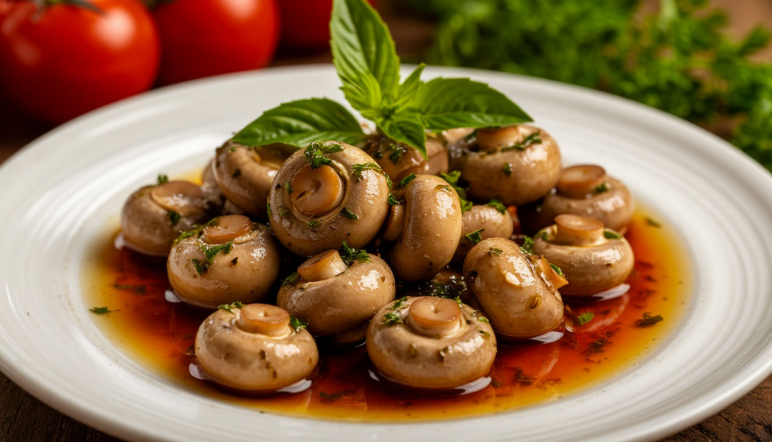 Знаете, какая закуска в моем доме никогда не доживает до полуночи? Эти маринованные шампиньоны. Готовлю их на каждый праздник, и всегда слышу один вопрос: «А рецепт можно?» Секрет в том, что грибы не варят в воде, а тушатся в собственном соку, насыщаясь ароматами специй. Получаются невероятно вкусными, упругими и ароматными. Делаю всегда двойную порцию — проверено, одной баночки мало!