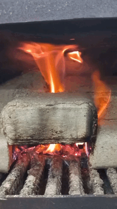 С огнём у нас проблем нет. Разжигание дровяной печи спрессованными опилками - процесс воистину залипательный.