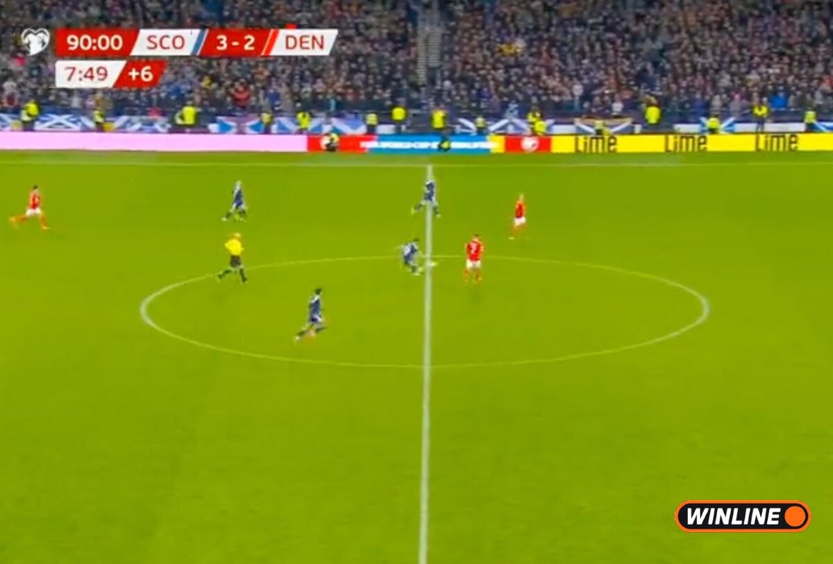 Сборная Шотландии забила с центра поля и вырвала победу над Данией, забив дважды после 90 минуты (4:2