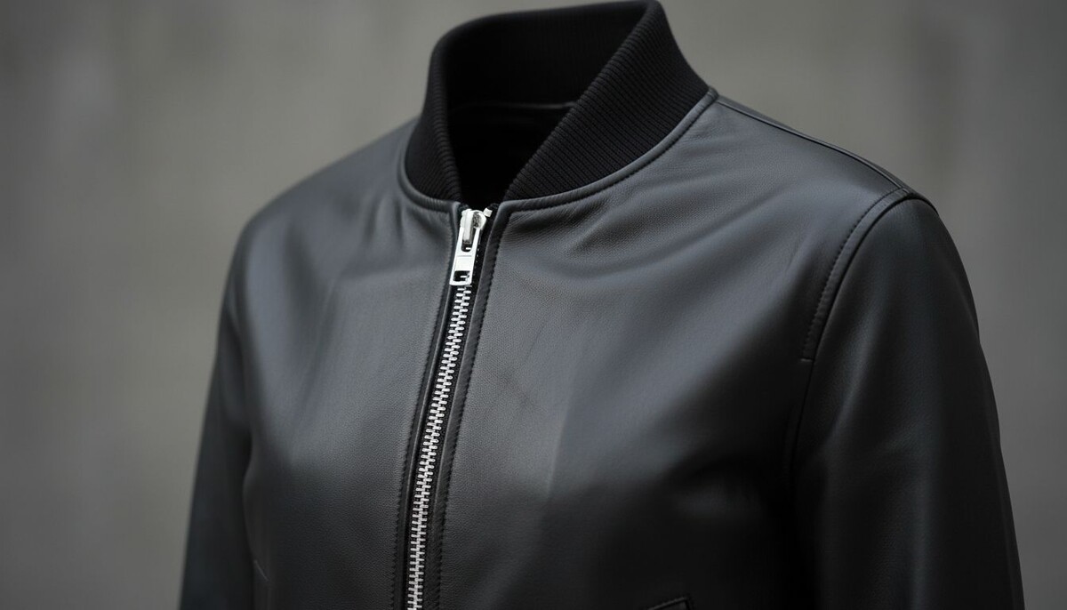 Фурнитура должна быть массивной, но сдержанной. Матовые молнии, а не блестящие. Или, если это кожаный бомбер, он может быть на кнопках, скрытых под планкой, что придает ему более строгий вид.