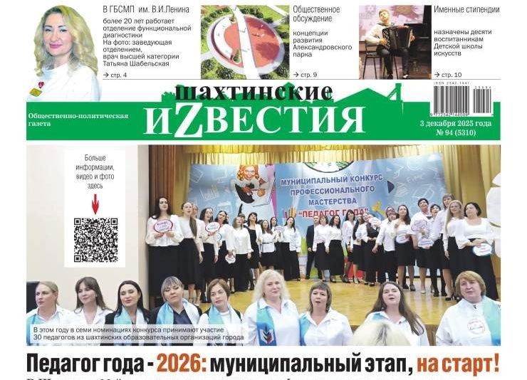 Сегодня среда, 3 декабря, и в свет вышел свежий номер «Шахтинских известий»