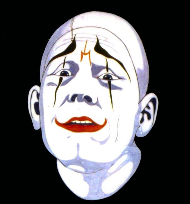 Его образ: мужчина в маске клоуна, выходящий «произнести важное», — и терпящий пощёчины. Маска фиксирует сценарную роль.