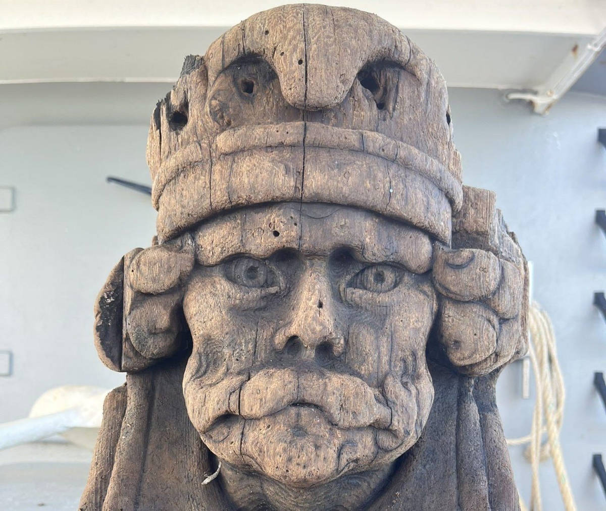 Меня завораживает магия взгляда сквозь толщу времени, особенно когда удаётся заглянуть в лицо давно ушедших эпох. Вот почему открытая голландскими рыбаками резная деревянная голова кажется столь притягательной. ...Это была обычная рабочая смена в холодных водах Северного моря, когда внезапно сеть подняла на поверхность нечто совершенно неожиданное. Вместо привычной добычи в неё попала удивительно хорошо сохранившаяся деревянная фигура, относящаяся ко временам Восьмидесятилетней войны Нидерландов против Испании (1568—1648 гг.). При детальном изучении выяснилось, что голова принадлежит мужчине с выразительными чертами лица и традиционной фригийской шапочкой, символизирующей свободу и сопротивление угнетению. Вероятно, она некогда венчала борт какого-то боевого корабля тех времён, пока судно не исчезло в пучине морской около середины XVI – начала XVII столетия. Именно эта фригийская шапочка привлекла внимание археологов, ведь она несёт глубокий исторический смысл. Государственному арх