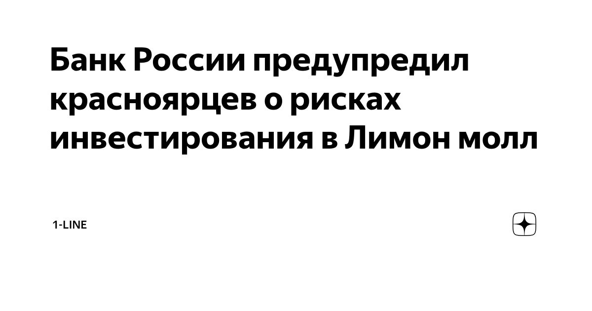 Банк России предупреждает граждан о рисках, связанных с инвестициями в Лимон молл (Lemon Mall)