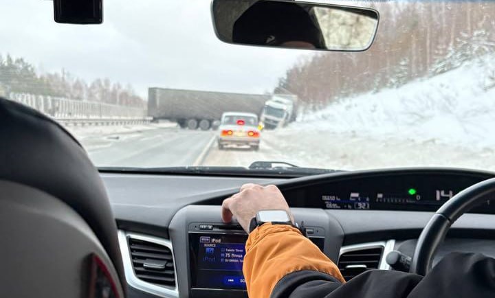 😲 Фура полностью перегородила федеральную трассу со стороны Ачинска в сторону Красноярска.