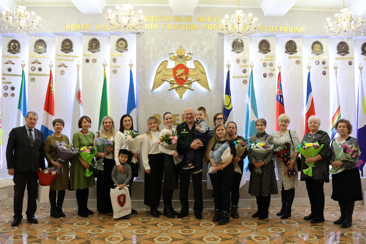 В рамках празднования Дня матери военнослужащие и сотрудники Восточного округа войск национальной гвардии Российской Федерации приняли участие в акциях и тематических встречах. В Хабаровске состоялось торжественное мероприятие, на котором чествовали вдов и мам погибших росгвардейцев. В начале встречи заместитель командующего Восточным округом Росгвардии по военно-политической работе генерал-майор Михаил Романов поздравил женщин с праздником, выразив искреннюю признательность матерям за воспитание сыновей – настоящих защитников Отечества, до конца оставшихся верными своей Родине. В знак уважения и благодарности гостям были вручены цветы и подарки. В завершение мероприятия для женщин с концертной программой выступил военный оркестр ведомства. Росгвардейцы никогда не забывают о родных и близких погибших коллег, всячески поддерживают и оказывают необходимую помощь семьям, потерявшим своих сыновей. Так, в Амурской области представители вневедомственной охраны и спецподразделений регионально