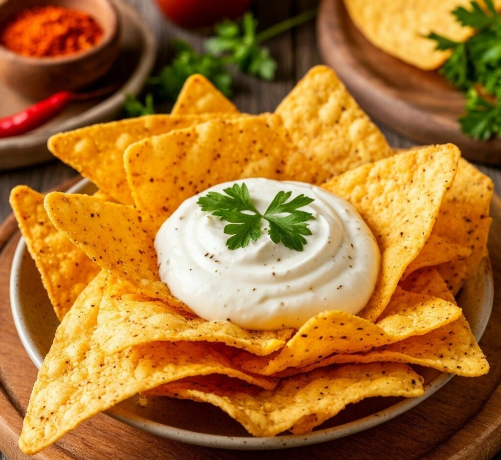 ВКУСНЫЙ И ПОЛЕЗНЫЙ ПЕРЕКУС — ЧИПСЫ ИЗ ТОРТИЛЬИ СО СМЕТАНОЙ, ЧЕСНОКОМ И ПАПРИКОЙ Мяу, мои пушистые хрустики! 😺 Кто сказал, что перекус не может быть одновременно хрустящим, ароматным и полезным? Эти чипсы из тортильи готовятся в духовке без лишнего масла, а соус из сметаны с чесноком — это просто небо с овчинку! Идеально для просмотра сериала в первый зимний вечер! 🍿🎬✨ ЧИПСЫ ИЗ ТОРТИЛЬИ СО СМЕТАНОЙ, ЧЕСНОКОМ И ПАПРИКОЙ ИНГРЕДИЕНТЫ: 🧾 ·Лепешки тортилья: 4 шт. ·Сметана (15-20%): 150 г ·Чеснок: 3 зубчика (2 для соуса, 1 для чипсов) ·Папирка молотая: 1 ч.л. + для посыпки ·Сушеный чеснок: ½ ч.л. ·Соль: по вкусу ·Растительное масло: 1 ст.л. (для смазывания) ·Свежая зелень: для подачи ВРЕМЯ ПРИГОТОВЛЕНИЯ: ⏰ 20 минут СЛОЖНОСТЬ:🐾 Справится любой котик ПОШАГОВЫЙ РЕЦЕПТ: 👩🍳 1. Разогрейте духовку до 180°C. 2. Лепешки тортильи смажьте тонким слоем растительного масла. Сразу приправьте: посолите, посыпьте паприкой и сушеным чесноком. Натрите одним зубчиком чеснока. Нарежьте на треугольни