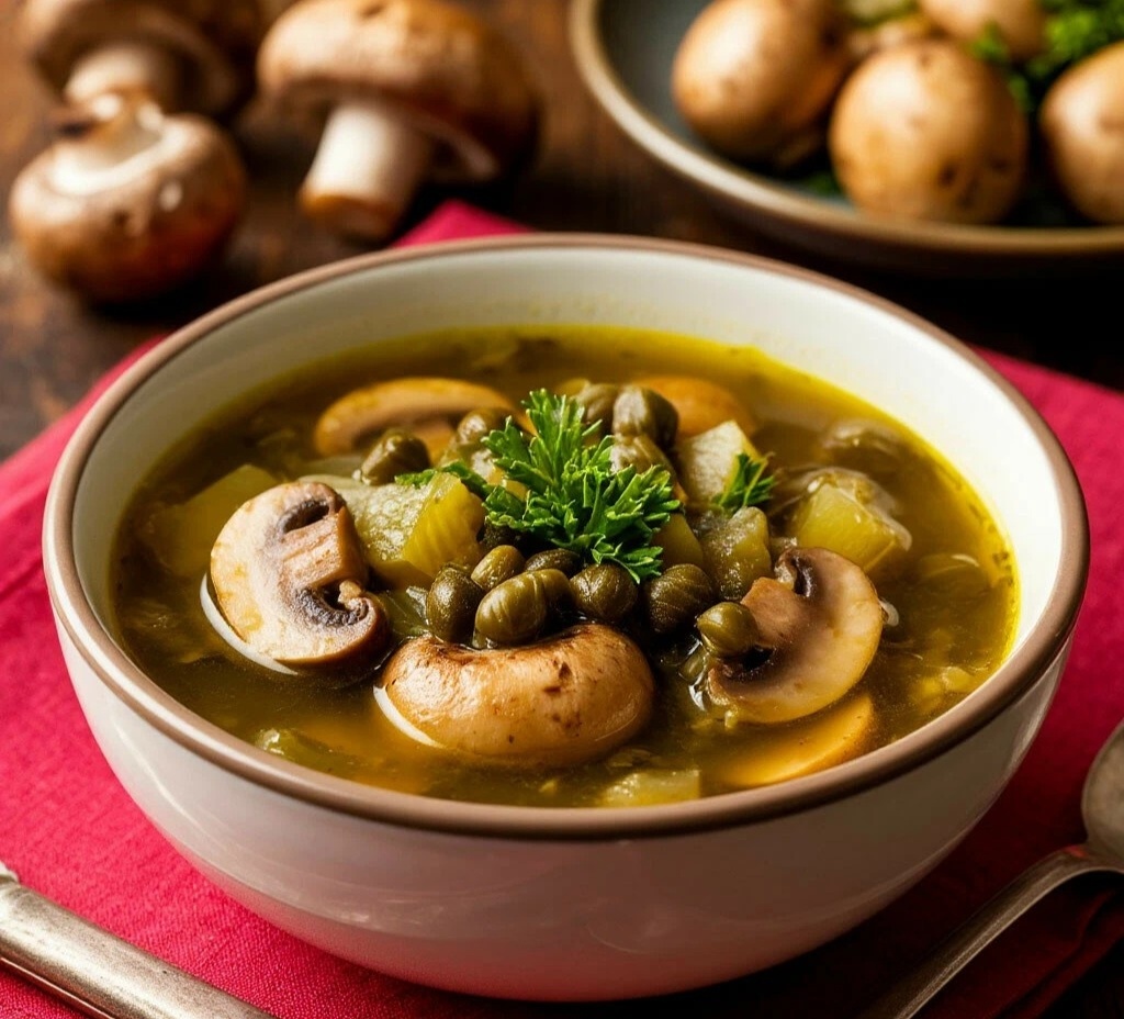 СУП — ВЕГЕТАРИАНСКИЙ РАССОЛЬНИК С ГРИБАМИ И КАПЕРСАМИ Мяу, мои пушистые любители супчиков! 😺 А вот и наш главный герой понедельника — рассольник! Но не простой, а вегетарианский, с ароматными грибами и пикантными каперсами. Он такой же наваристый и душевный, как классический, но без мяса! Идеальная тарелка тепла для начала зимы! 🍲❄️🤤 ВЕГЕТАРИАНСКИЙ РАССОЛЬНИК С ГРИБАМИ И КАПЕРСАМИ ИНГРЕДИЕНТЫ: 🧾 ·Вода: 2,5 л ·Картофель: 3 шт. (около 400 г) ·Грибы (шампиньоны/вешенки): 300 г ·Перловая крупа: 100 г ·Морковь: 1 шт. (около 100 г) ·Лук репчатый: 1 шт. (около 100 г) ·Огурцы соленые (бочковые): 3 шт. (около 150 г) ·Овощной бульонный кубик: 1 шт. ·Каперсы: 2 ст.л. (можно мелко порубить) ·Томатная паста: 1 ст.л. ·Растительное масло: 3 ст.л. ·Лавровый лист: 2 шт. ·Соль, перец горошком: по вкусу ·Свежий укроп: для подачи ВРЕМЯ ПРИГОТОВЛЕНИЯ: ⏰ 1 час СЛОЖНОСТЬ:🐾 Нужна сноровка ПОШАГОВЫЙ РЕЦЕПТ: 👩🍳 1. Перловку промойте и отварите до полуготовности (20-25 минут). 2. В кастрюлю с 2,5 л в