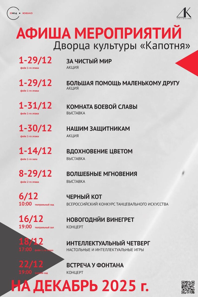 Дорогие жители района Капотня! ☺️ Поздравляем вас с наступлением первого дня зимы! 🎉 Пусть этот месяц принесет вам тепло, уют и множество приятных моментов ❤️ А чтобы декабрь стал еще ярче и интереснее, мы приглашаем вас на наши праздничные мероприятия! ☺️ Вас ждут увлекательные события, которые подарят отличное настроение и зарядят предновогодним волшебством. Следите за нашими анонсами, чтобы не пропустить самое интересное!☺️ #Капотня #Культура #Москва #ОКЦЮВАО