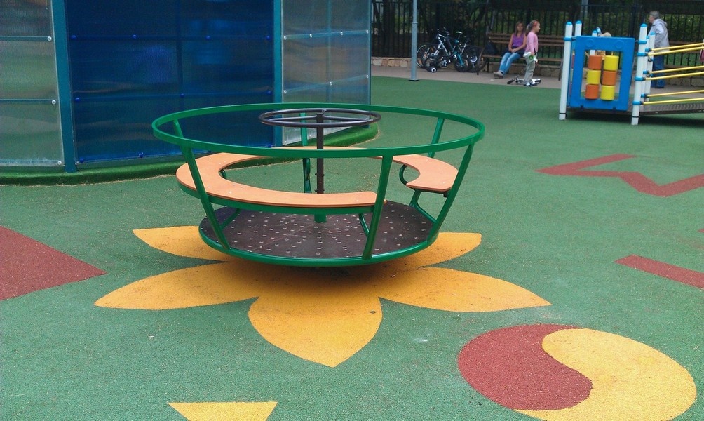 - Пружинные карусели-вертушки: Небольшие, для 1-2 детей. Приводятся в движение отталкиванием ног от земли. Вариант для маленьких дворовых площадок.