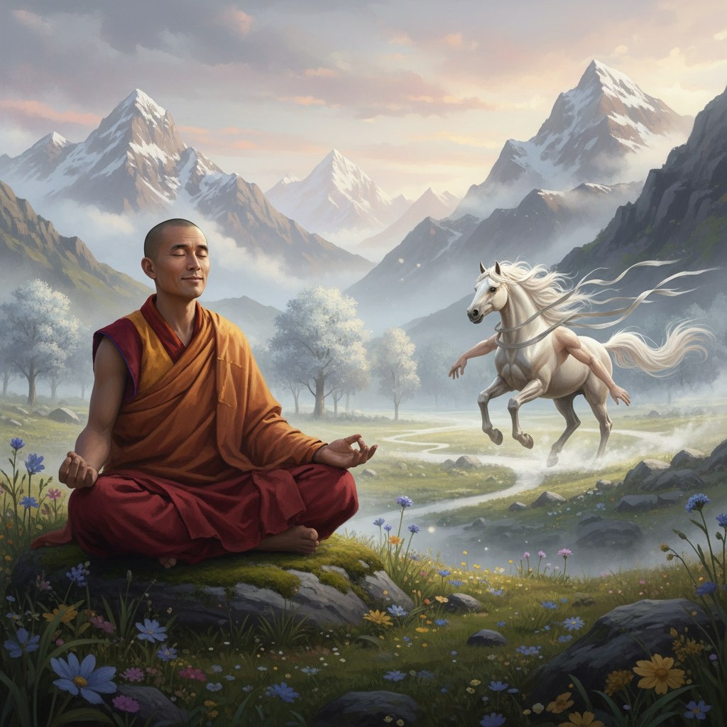 Секрет свободы: загадка двухрукого коня! Ученик подошёл к мастеру и спросил: "Мастер, как быть, когда вчера и завтра поглощают сегодняшний миг, словно жадные боги?" Тишина исполнилась присутствия, как густой туман, что не рассеивается. В комнате слышалось только дуновение ветра, невидимое и лёгкое, как дыхание. Лампа мерцала нежным светом, отбрасывая тени на древние стены. Мастер, не открывая глаз, произнёс: "Всадник сидит на двухруком коне: одна рука тянется к восходу, другая — к закату. Однако вожжи свободы никогда не связаны. Ему выбирать, куда смотреть." Ученика окутала эта фраза, сначала стеклянный звон, затем — тишина, как снежинка на горячем железе. Он снова ощутил, что стоит на перекрёстке, но видит только свой путь вперёд, бесконечно свежий. Тишина поглотила его вопрос, превращая его в крылья, а значит, в полёт.
