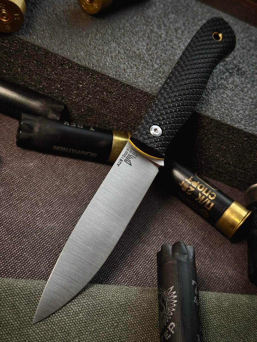 Стильный работяга «Бушкрафт» в черной «чешуе». Клинок выполнен из стали AUS10co, а на рукояти накладки из G10 c насечкой для более надежного хвата. В комплекте ножны из кайдекса. Длина ножа: 218 мм Длина клинка: 107 мм Обух: 3 мм. ‼️Вести диалог только с @burlax1
